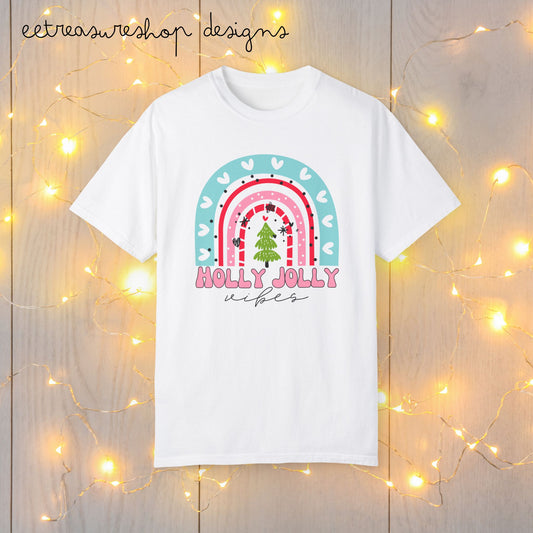 Holly Jolly Vibes T-shirt, Rainbow Christmas Shirt, Cute Holiday Tee, Festive Xmas Top, Comfort Colors Garment-Dyed Shirt
