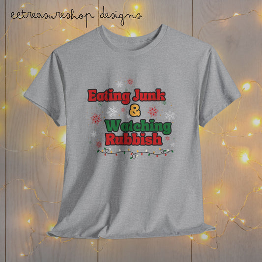 Christmas Movie Junkie Unisex Tee, Xmas Watching Rubbish Funny T-Shirt, Holiday Eating Junk Xmas Top, Christmas Film Lover Shirt, Festive