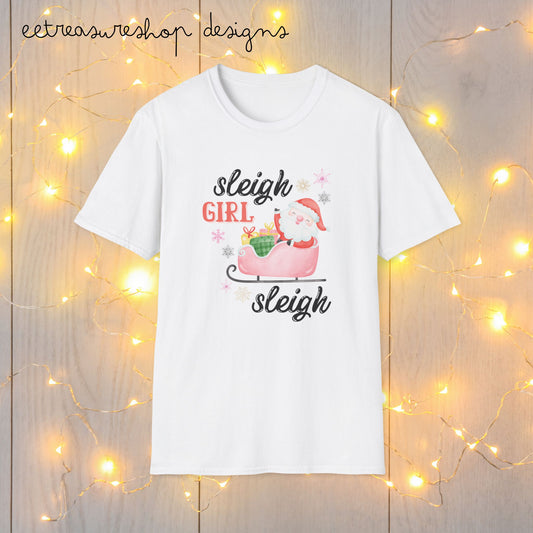 Christmas Sleigh Girl Softstyle T-Shirt, Holiday Santa Sleigh Tee, Festive Reindeer Shirt, Winter Snow Xmas Top, Gift for Her, Women's