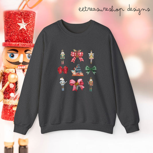 Nutcracker Christmas Bows Sweatshirt, Holiday Crewneck, Festive Xmas Pullover, Winter Sweater Top, Seasonal Clothing