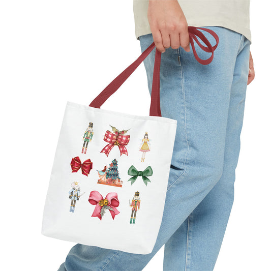 Nutcracker Christmas Bows Tote Bag, Holiday Shopping Bag, Festive Carryall, Xmas Gift Tote, Ballet Lover Gift, Festive Tote Bag