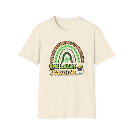 One Lucky Teacher St Patricks Day Unisex Softstyle T-Shirt, St Patricks Day Gift for Teacher Friend, Birthday Gift for Teacher