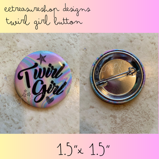 Twirl Girl Baton Twirler Pinback Button, Rainbow Baton Twirling Pin