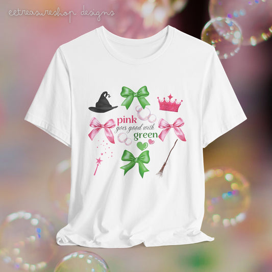 Witch Princess Tee, Pink Green Bows, Musical Fan Gift, Unisex Jersey Shirt, Witch Hat Shirt, Bubble Tee