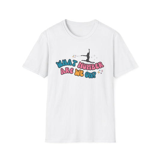 What Number Are We On Twirler Unisex Softstyle T-Shirt, Baton Twirler Gift for Competition, Birthday Gift for Twirl Mom