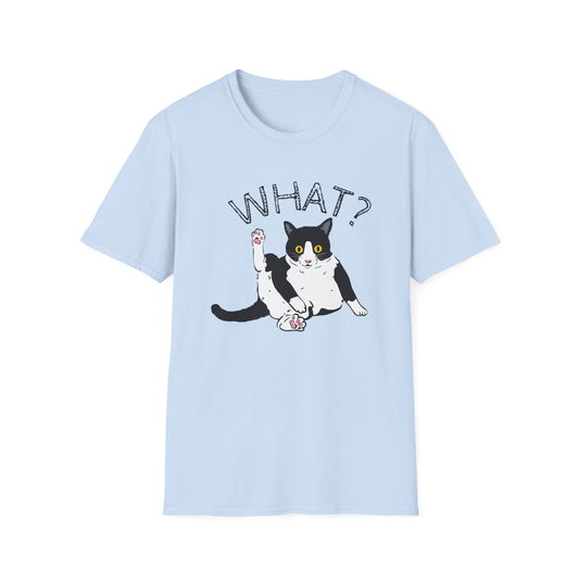What Funny Tuxedo Cat Unisex Softstyle Gildan T-Shirt, Funny Cat Lover Tee, Birthday Gift for Cat Mom, Funny Gift for Cat Lover