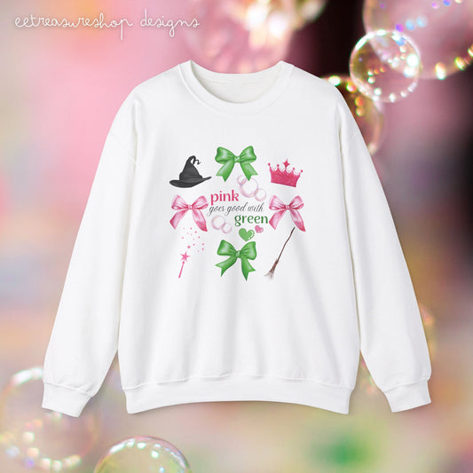 Witchy Crewneck Sweatshirt, Princess Movie Lover Gift, Pink and Green Bows, Musical Theme, Bubbles, Witch Hat