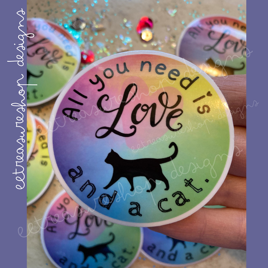 All You Need is Love and a Cat Vinyl Waterproof Sticker