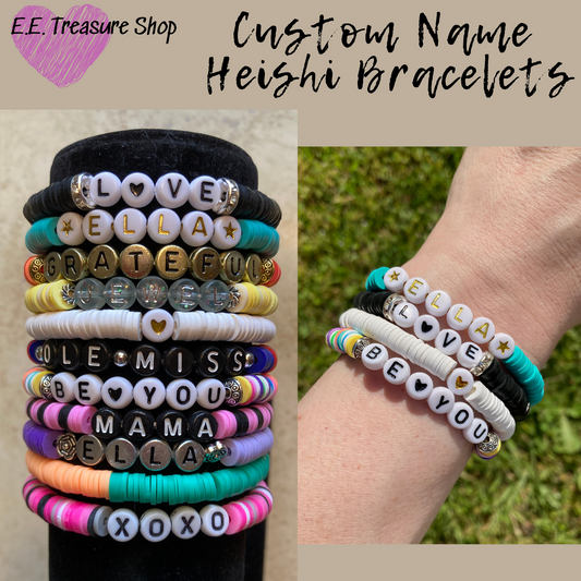 Custom Name Heishi Bracelet, Multi Color Polymer Disc Bead Bracelet