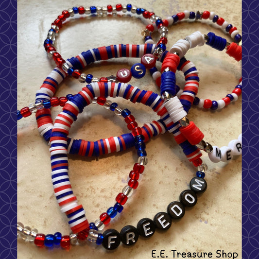 USA Patriotic Heishi and Seed Bead Bracelet Set