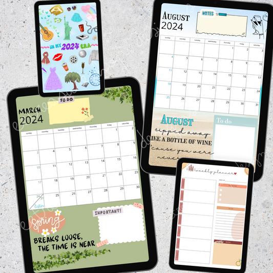Swiftie Themed 2024 Digital Planner PDF for GoodNotes, Notability, iPad Tablet Monthly Weekly Planner, Taylor Swift Inspired Calendar
