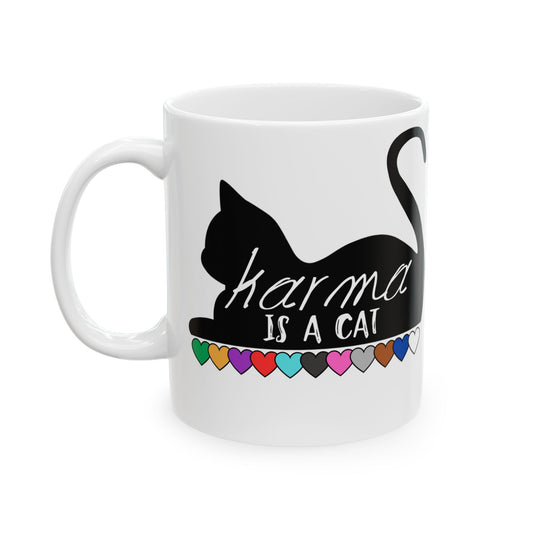Karma is a Cat Swiftie Ceramic Mug 11oz, Swiftie Coffee Cup, Swiftie Gift, Taylor Swift Fan Mug