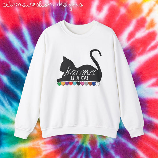 Karma is a Cat Unisex Crewneck Sweatshirt, Taylor Sweatshirt, Karma Cat Lover Shirt, Cat Mom Swiftie Christmas Gift