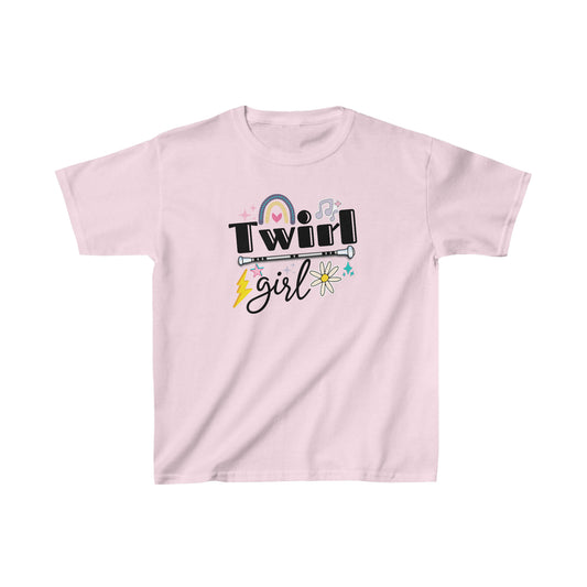 Twirl Girl Baton Twirler Preppy Kids Heavy Cotton Tee, Competition Gift for Twirler Daughter, Recital Gift for Twirler Student