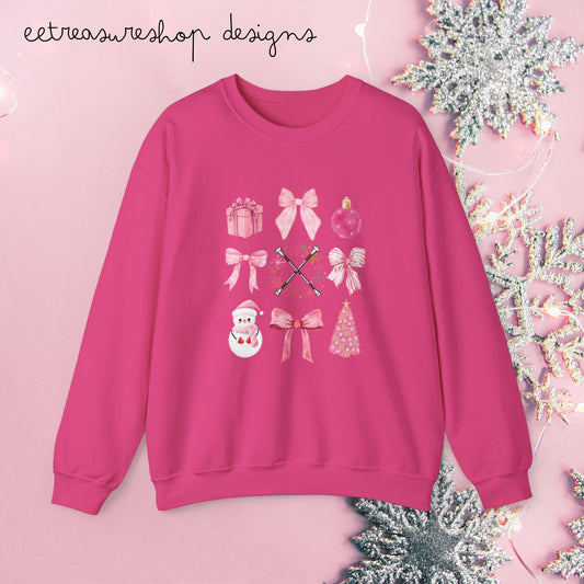 Baton Twirler Christmas Sweatshirt, Pink Bows Design, Holiday Gift for Twirlers, Twirling Team Apparel, Crewneck Jumper, Twirl Team Clothing